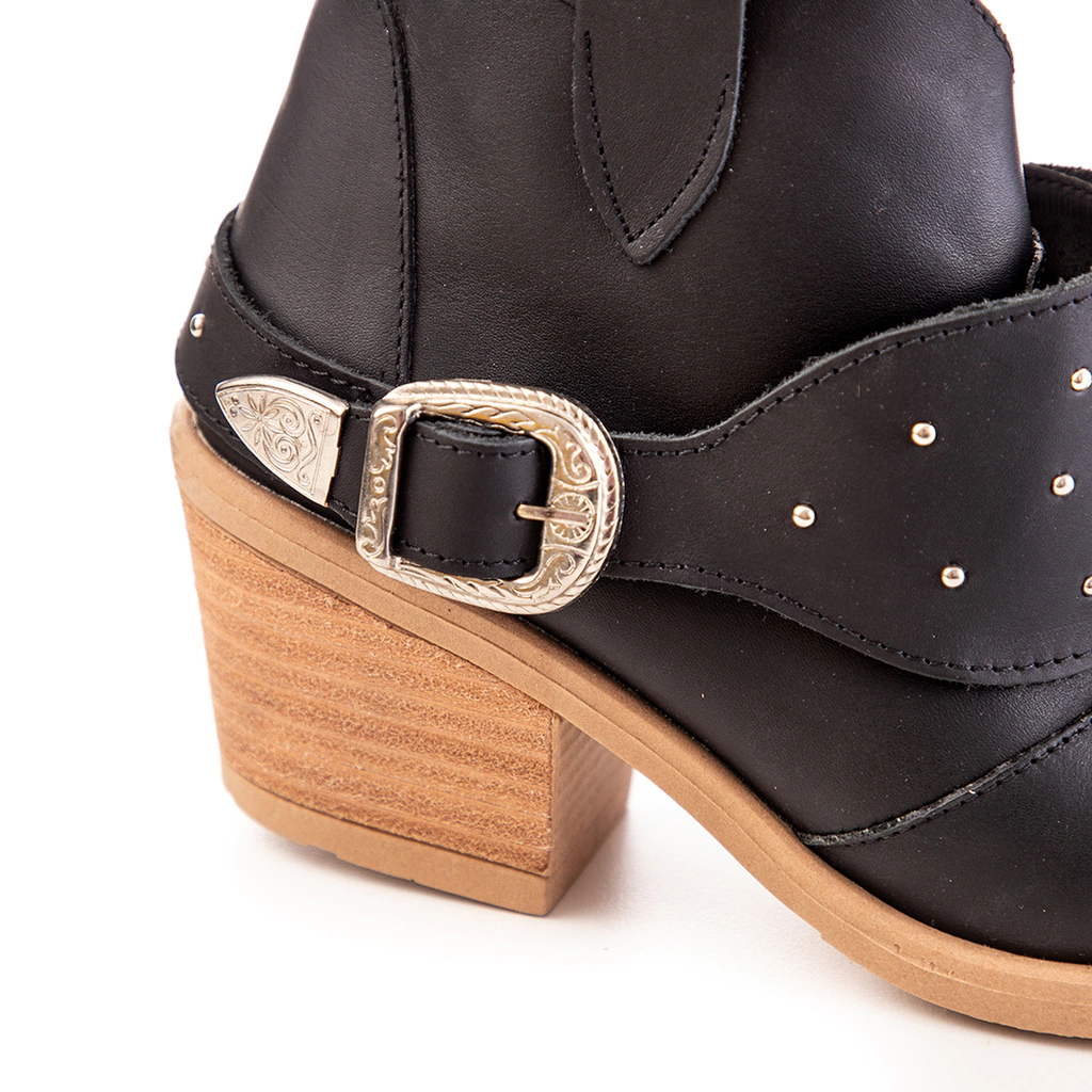 Botinetas 100% cuero Negras opacas con tira extraible ( con detalle metalizados). Para Alternar el Look texano de la misma.